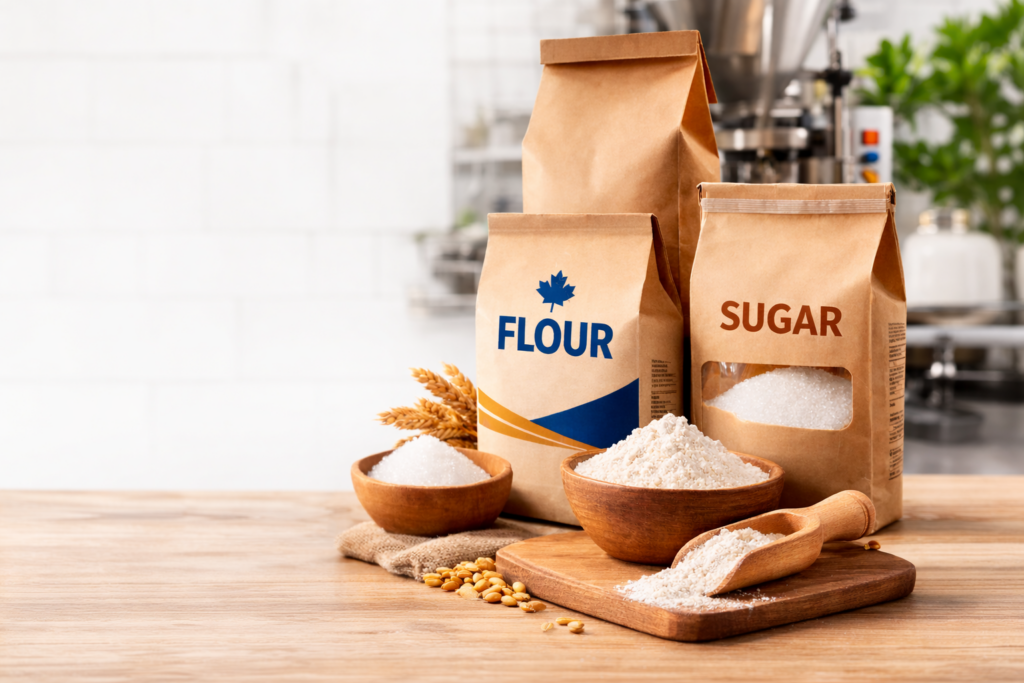 Bulk Flex supplies Canadian-manufactured multiwall paper bags and printed roll stock for the North American food and agricultural market. Our solutions support grocery chains, flour mills, sugar packers, ingredient manufacturers, and automated packaging operations across Canada and the United States.